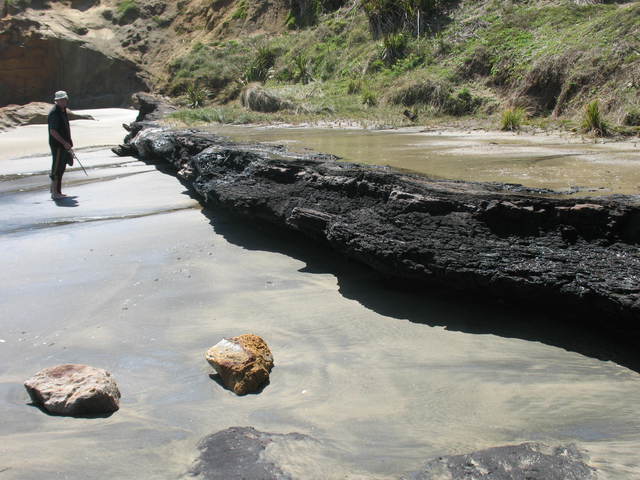 Under the sand on Ripiro beach lays an Ancient forest of Kauri trees maybe around fifty thousand years old .